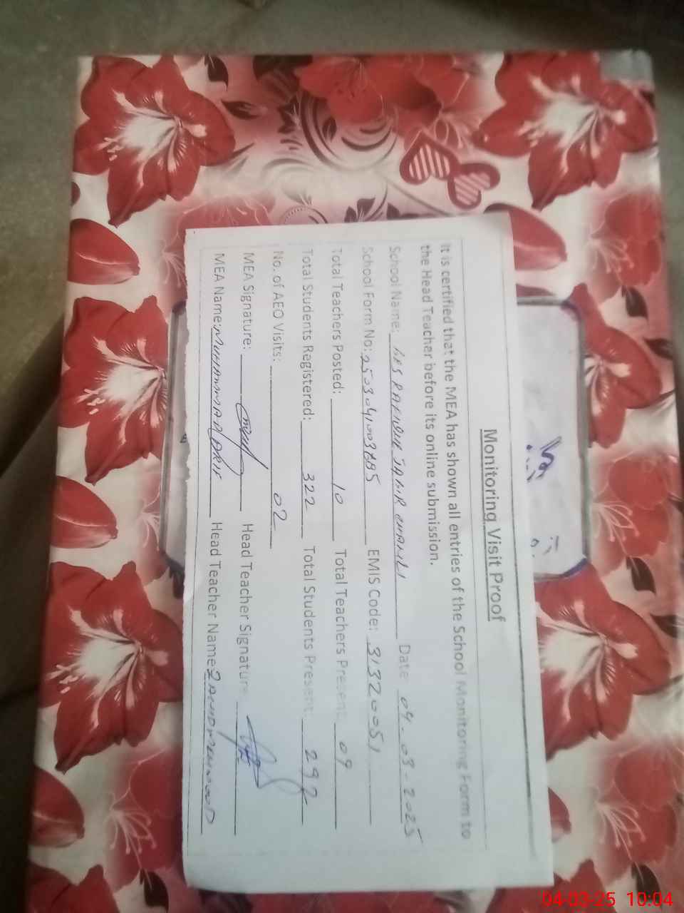 | Certified that this School was Inspected by the Undersigned MEA/DMO Today and the Information Stated Above is as Per Record. | |||||