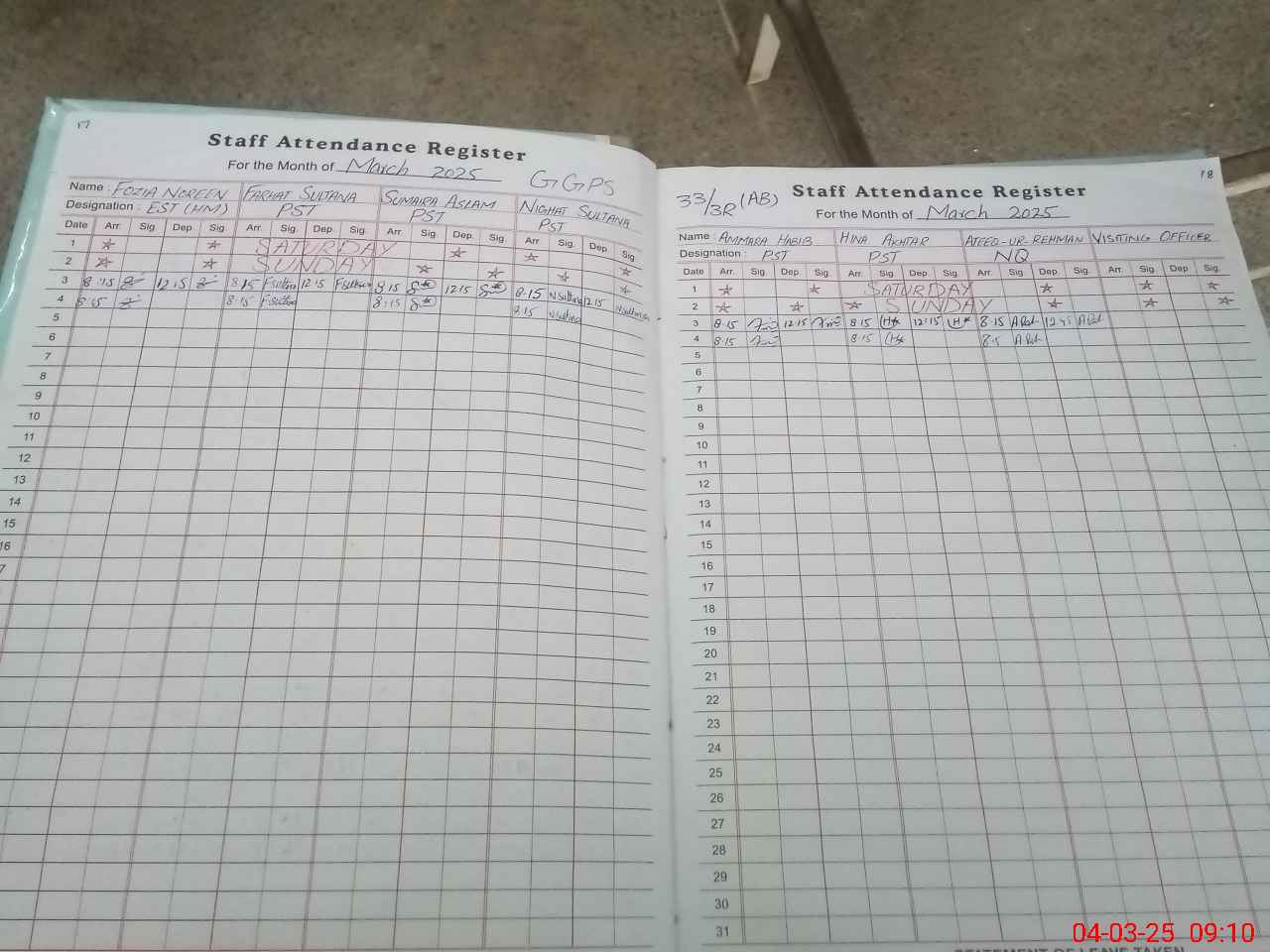| Leave | Duty | Absent | Maternity | Medical | Ex- Pak |
