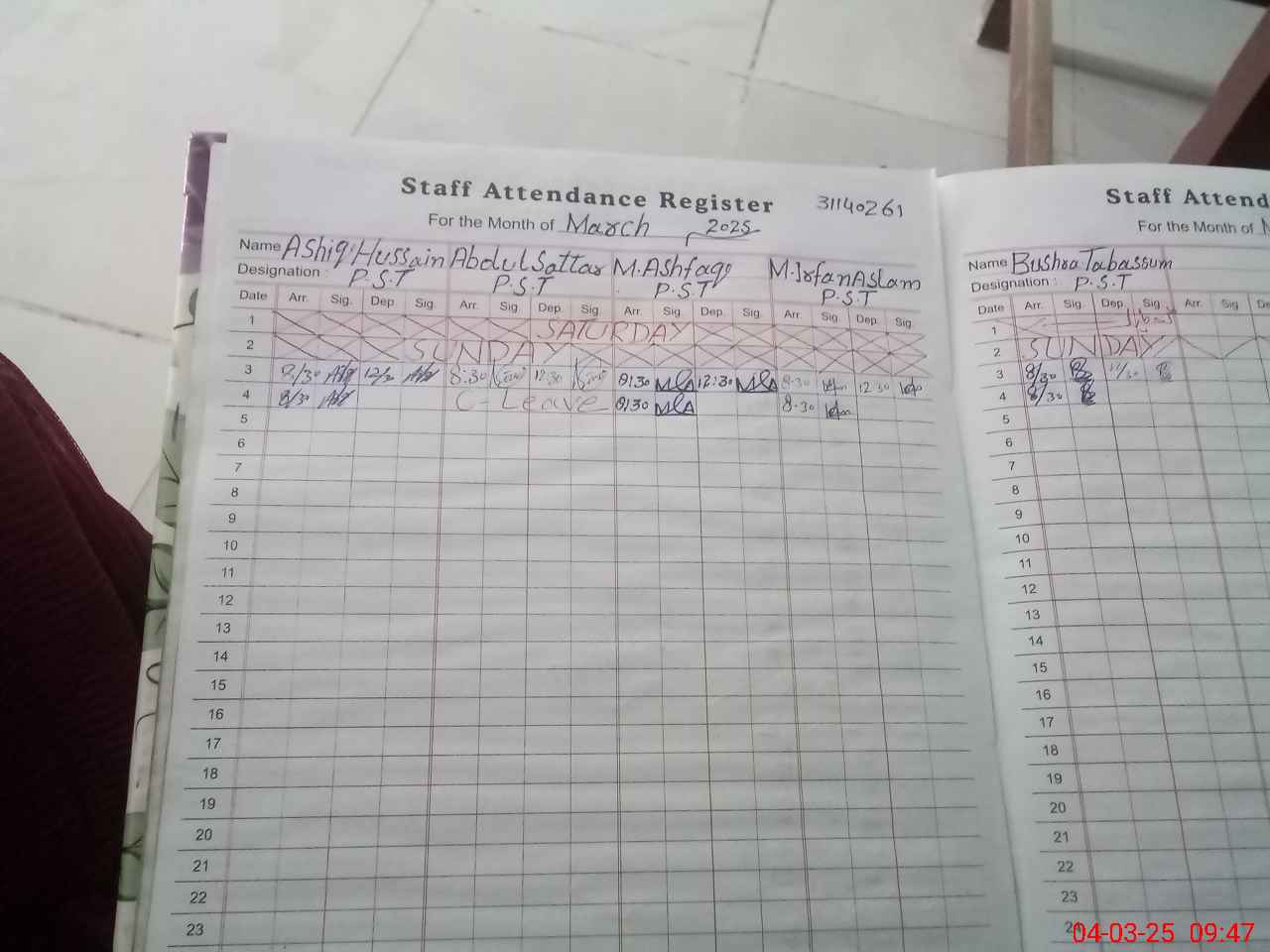 | 31**** | Ab**** Sa**** | PST | Regular | 0 | 0 | 0 | 0 | 0 | 0 | 0 | 0 | 0 | Casual |