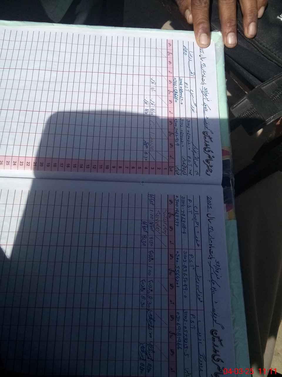 | CNIC | Full Name | Designation | R/C | Absence during last cal. month |