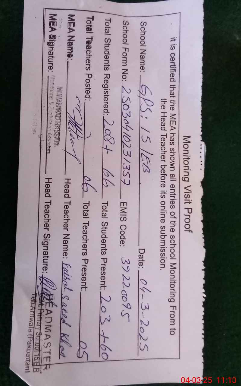 | Name: SH**** AL**** Designation: (School Headmaster's/Headmistress's) PST Phone/Cell Number: 03**** |
