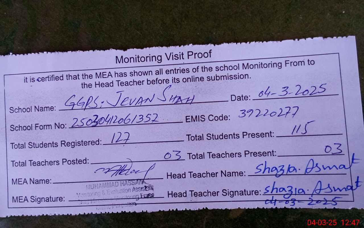 | EMIS Code: 39220277 | Name of School: GGPS JEVAN SHAH | |||