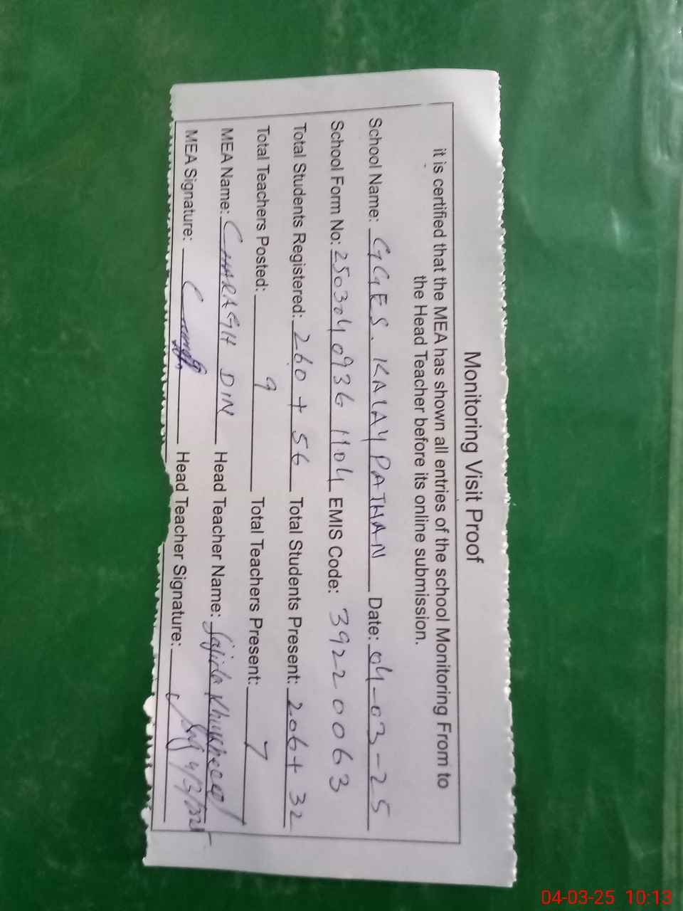 | EMIS Code: 39220063 | Name of School: GGES KALAY PATHAN | |||