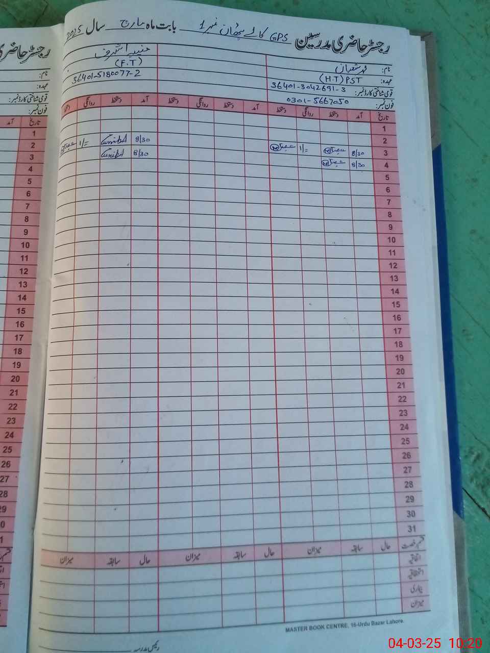 | Name: MU**** SH**** Designation: (School Headmaster's/Headmistress's) PST Phone/Cell Number: 03**** |
