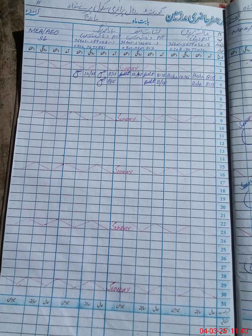 | Name: AI**** PE**** Designation: (School Headmaster's/Headmistress's) PST Phone/Cell Number: 03**** |