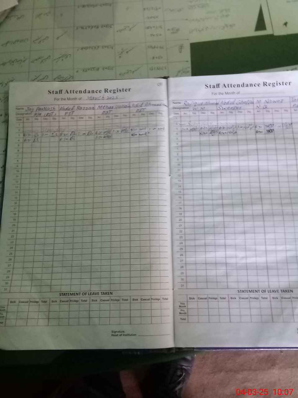 | Leave | Duty | Absent | Maternity | Medical | Ex- Pak |