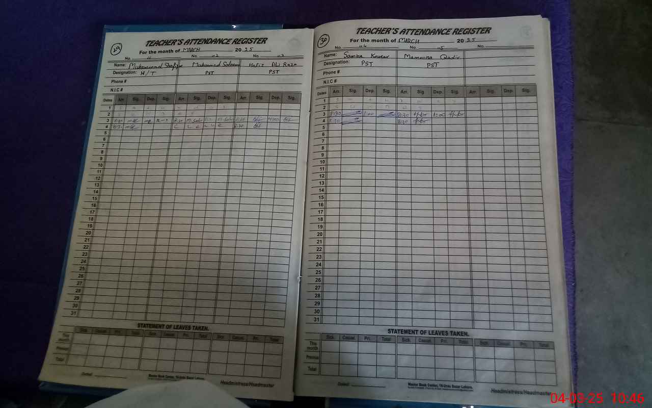 | Name: Mo**** SH**** Designation: (School Headmaster's/Headmistress's) PST/PTC/JV Phone/Cell Number: 03**** |