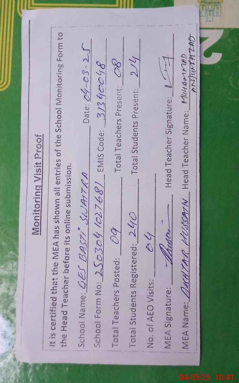 | EMIS Code: 31340048 | Name of School: GES BASTI SWAITRA | |||