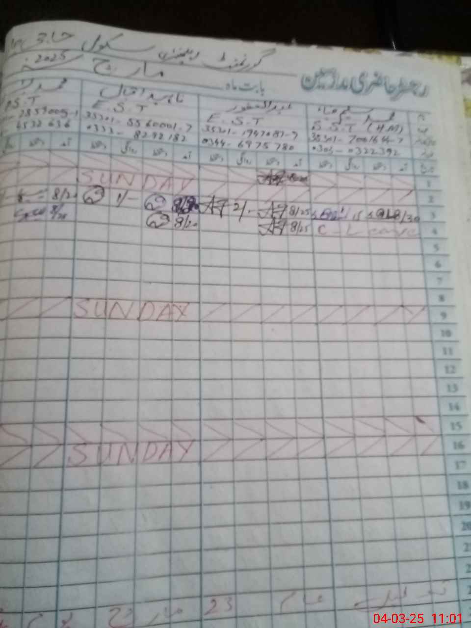 | Name: MSa**** Zi**** Designation: (School Headmaster's/Headmistress's) S S T General Phone/Cell Number: 03**** |