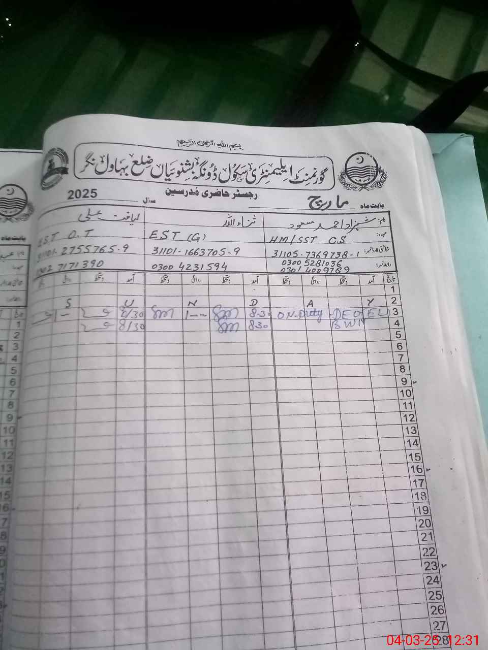 | 31**** | Za**** UlAb**** | CIV | 0 | 0 | 0 | 0 | 0 | 0 | 0 | 0 | 0 | Absent (Un-Authorized) | |