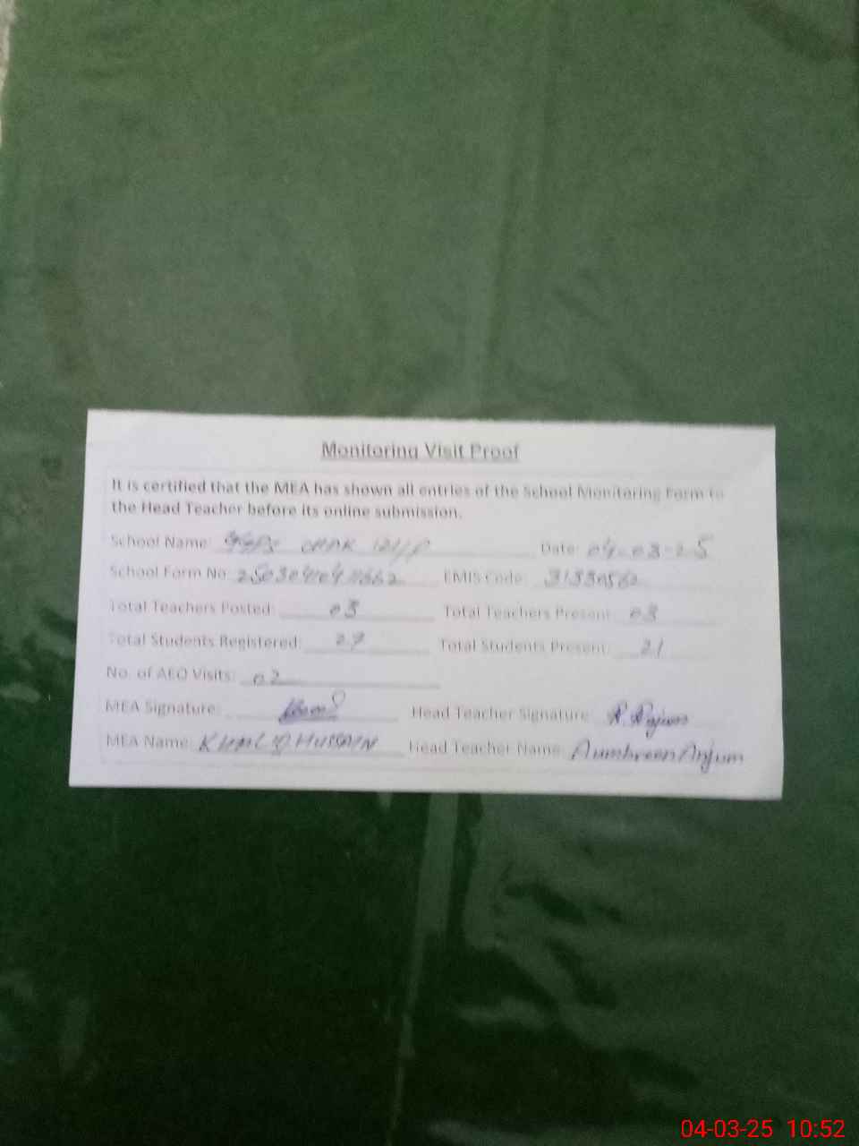 | Certified that this School was Inspected by the Undersigned MEA/DMO Today and the Information Stated Above is as Per Record. | |||||