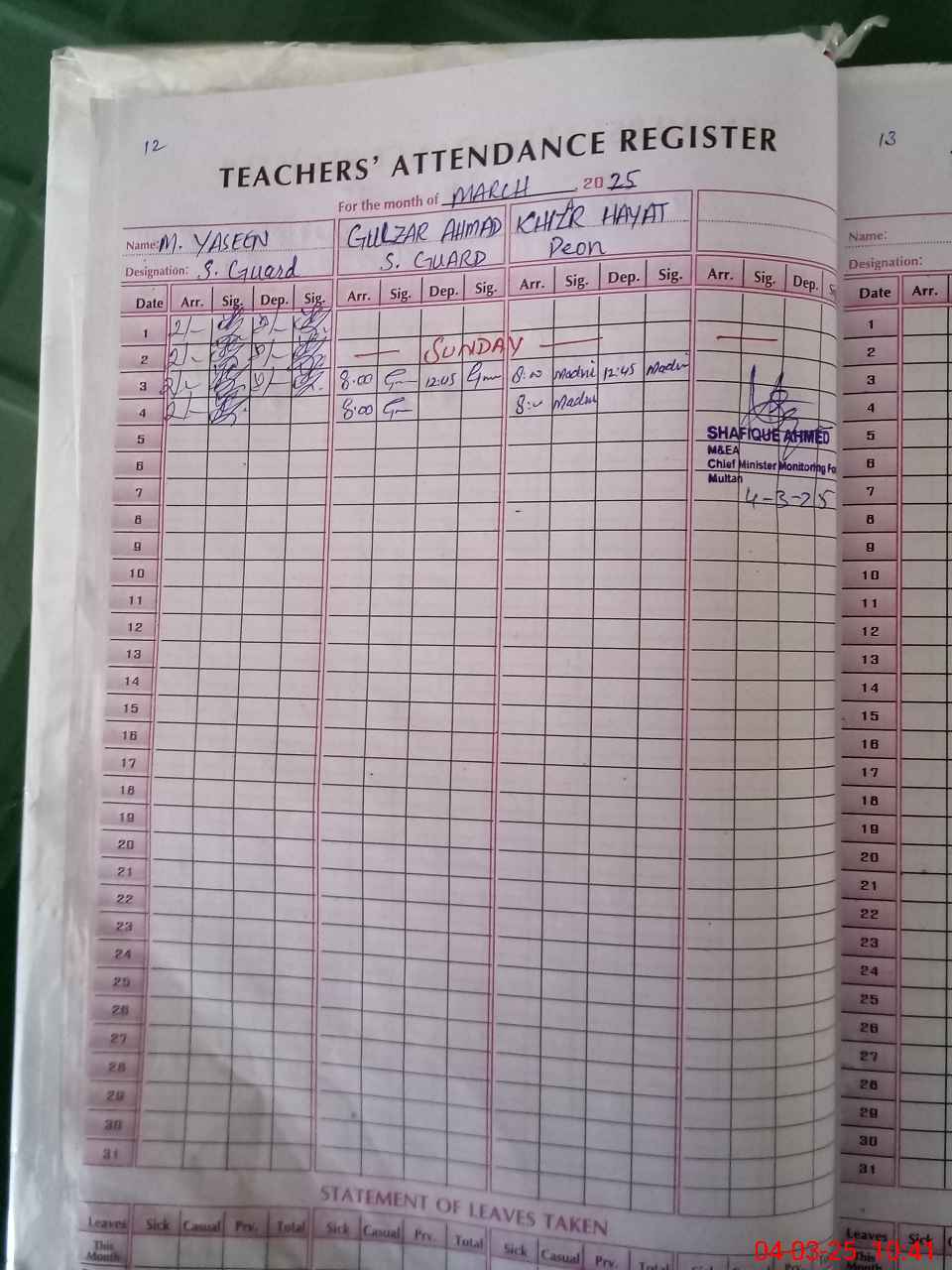 | 36**** | Ab**** Ra**** | SST | Regular | 0 | 0 | 0 | 0 | 0 | 0 | 0 | 0 | 0 | Maternity |
