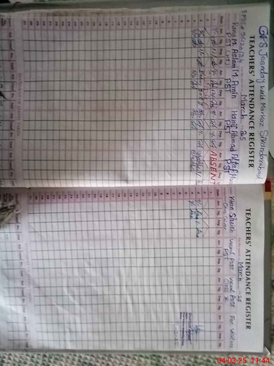 | CNIC | Full Name | Designation | R/C | Absence During Last Calender Month |