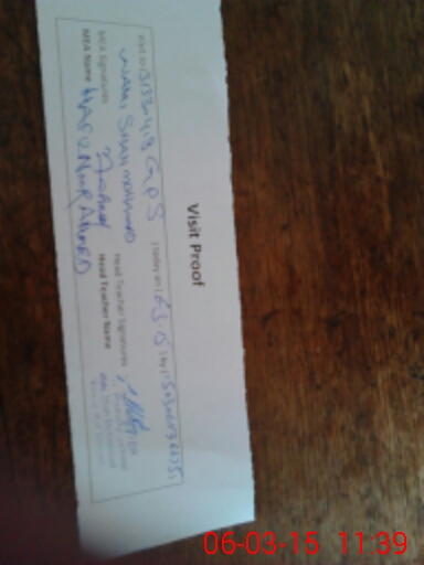 | School Visited by School Health & Nutrition Supervisor (No. of Visits) | 1 | Name1: | Naveed Ul Hassan | Name2: | Null |