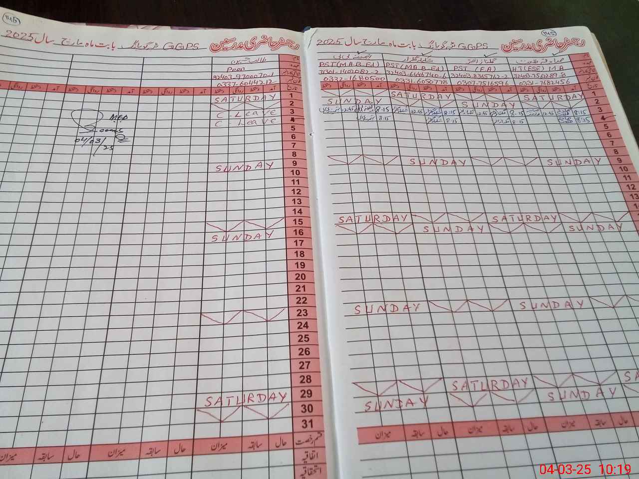 | Remarks (Use Separate Page if Required): Talib Hussain SG on casual leave over All cleaness good | |||||