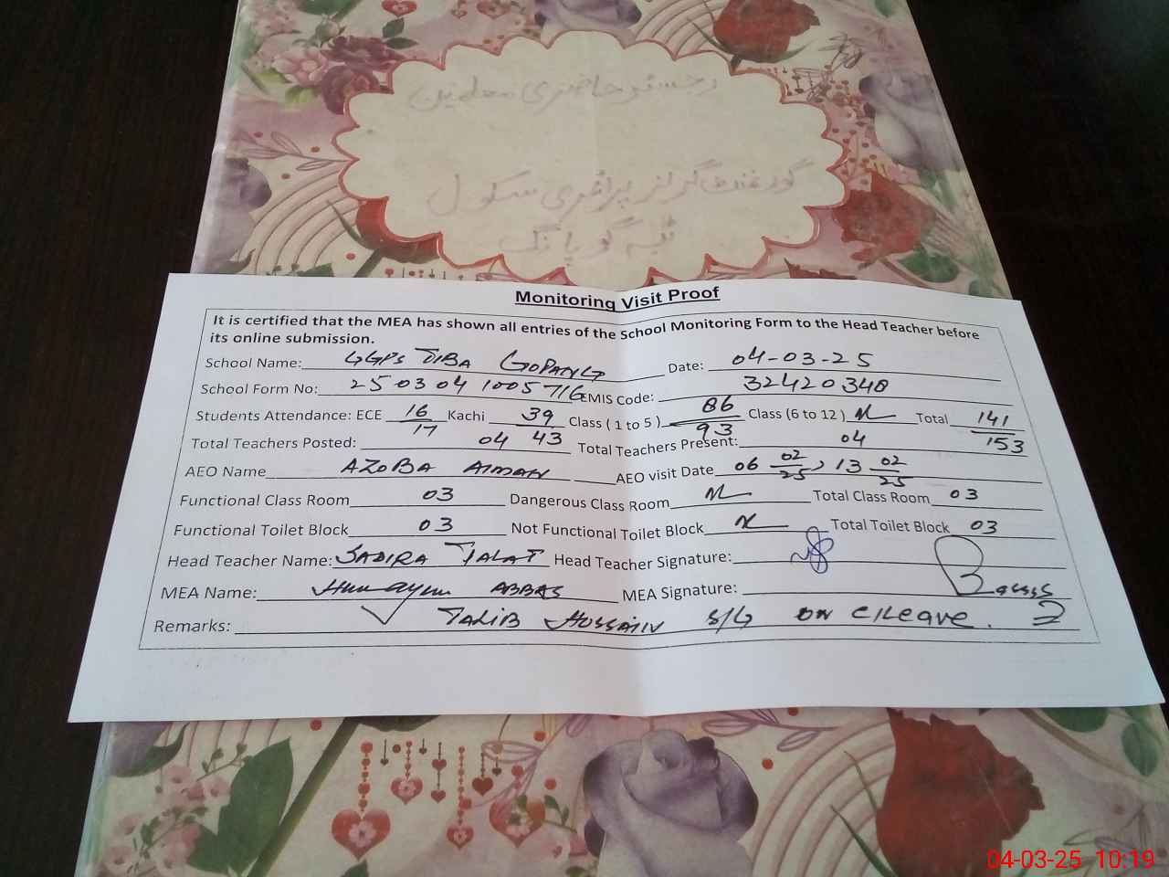 | EMIS Code: 32420348 | Name of School: GGPS TIBBA GOPANG | |||