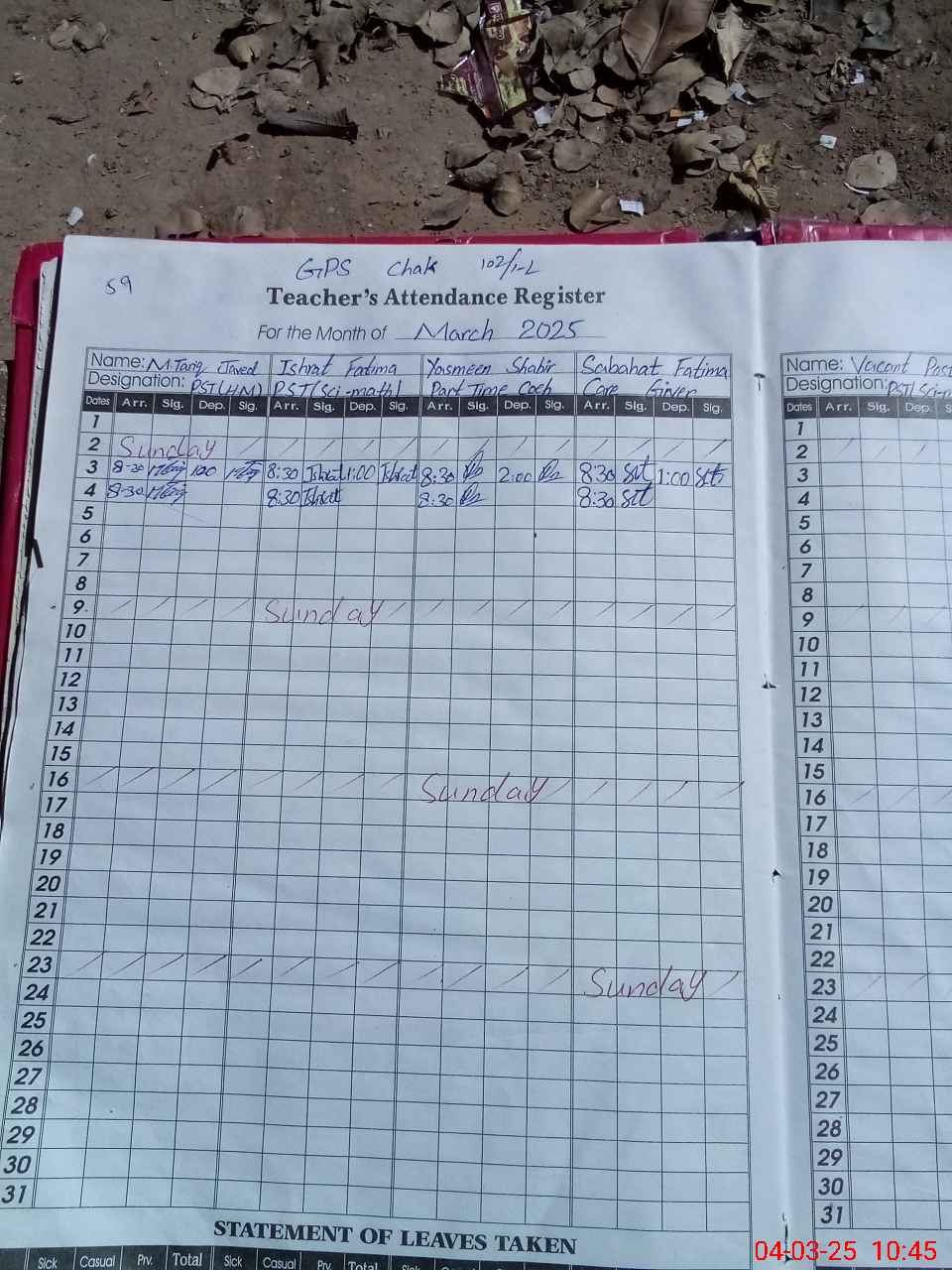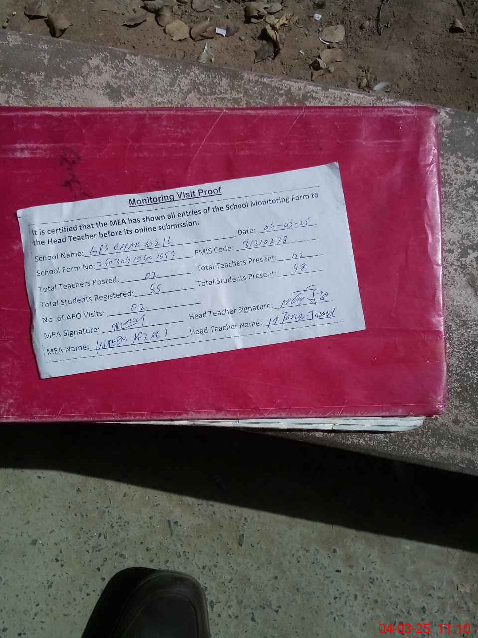 | EMIS Code: 31310278 | Name of School: GPS CHAK 102 1/L (After Noon) | |||