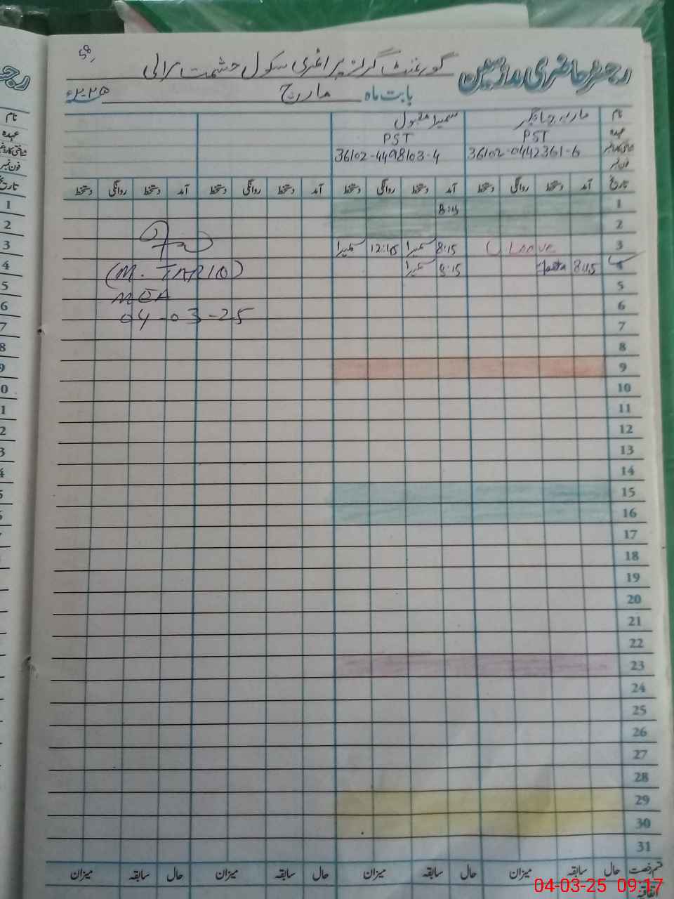 | Name: MA**** JE**** Designation: (School Headmaster's/Headmistress's) PST Phone/Cell Number: 03**** |