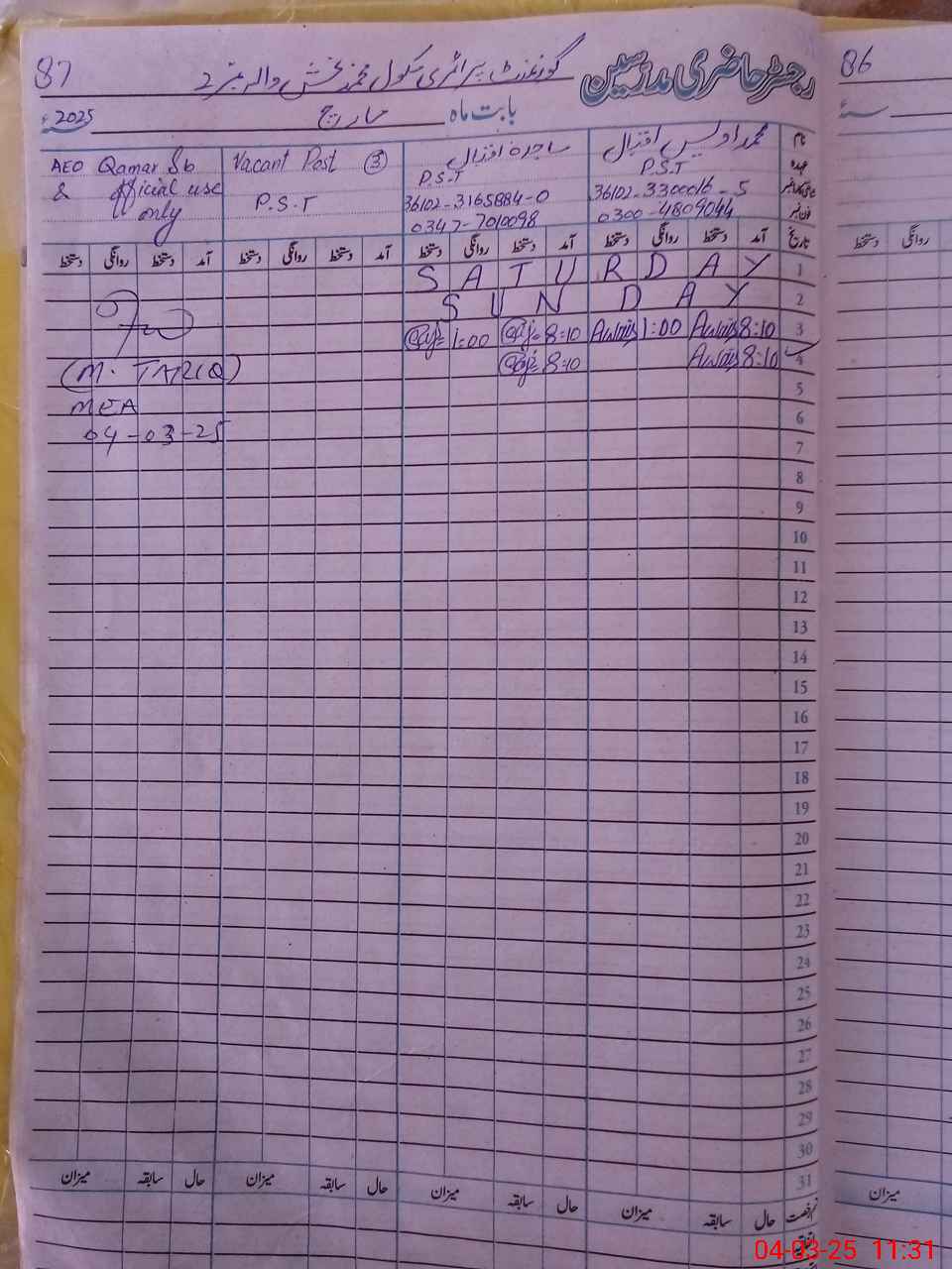 | Name: Mu**** Aw**** Iq**** Designation: (School Headmaster's/Headmistress's) PST Phone/Cell Number: 03**** |