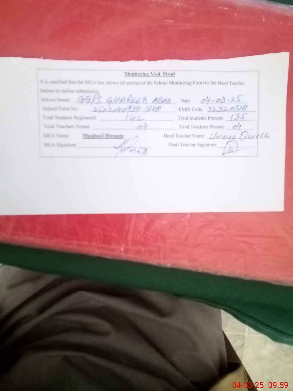 | EMIS Code: 32320518 | Name of School: GGPS GHAREEB ABAD | |||