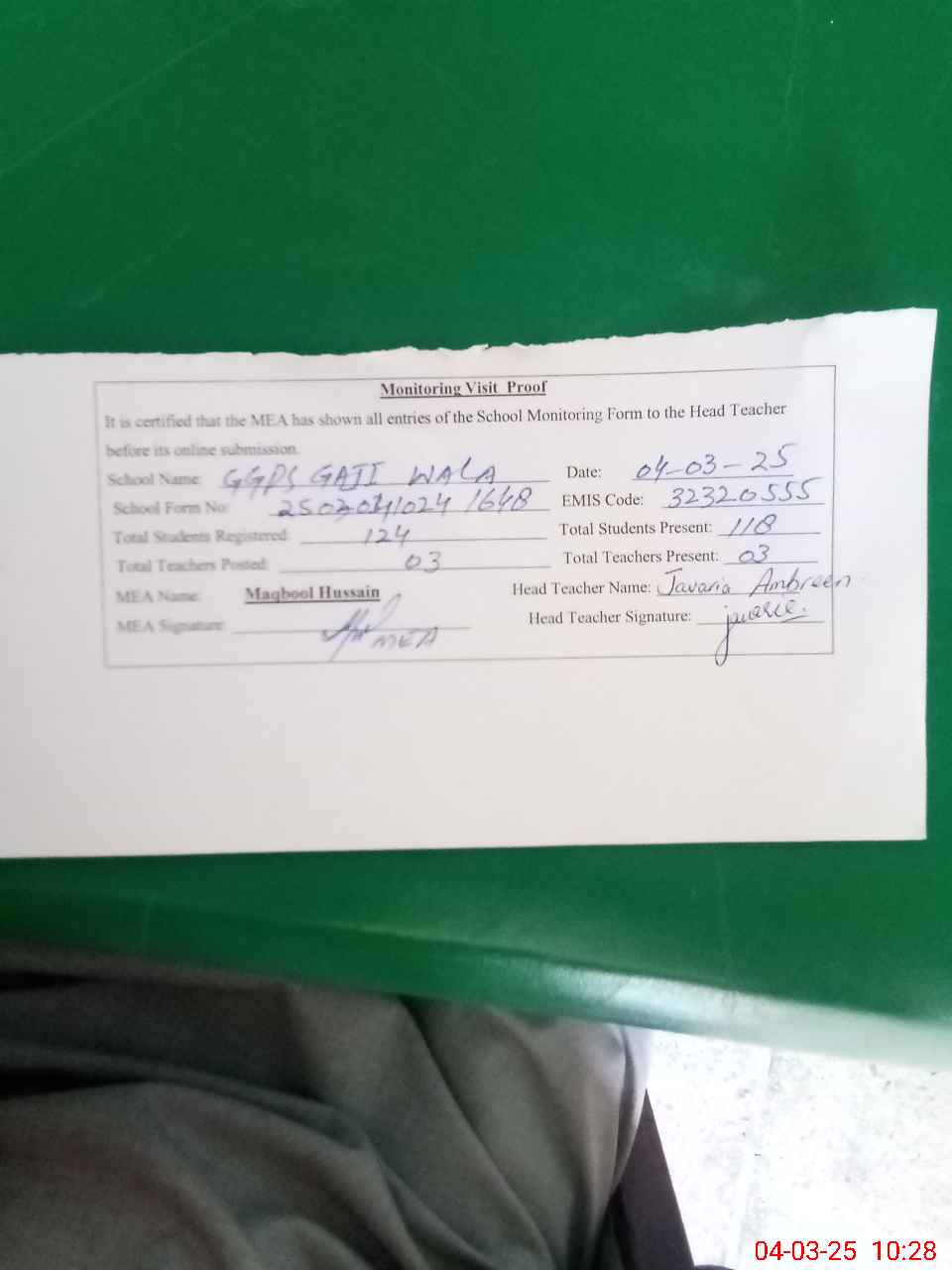 | EMIS Code: 32320555 | Name of School: GGPS GAJI WALA | |||