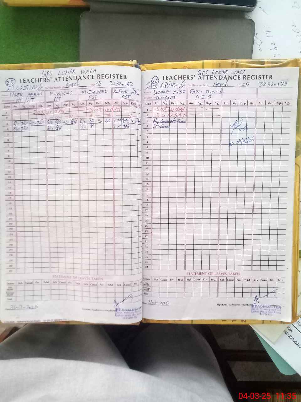 | EMIS Code: 32320153 | Name of School: GPS LOHAR WALA | |||