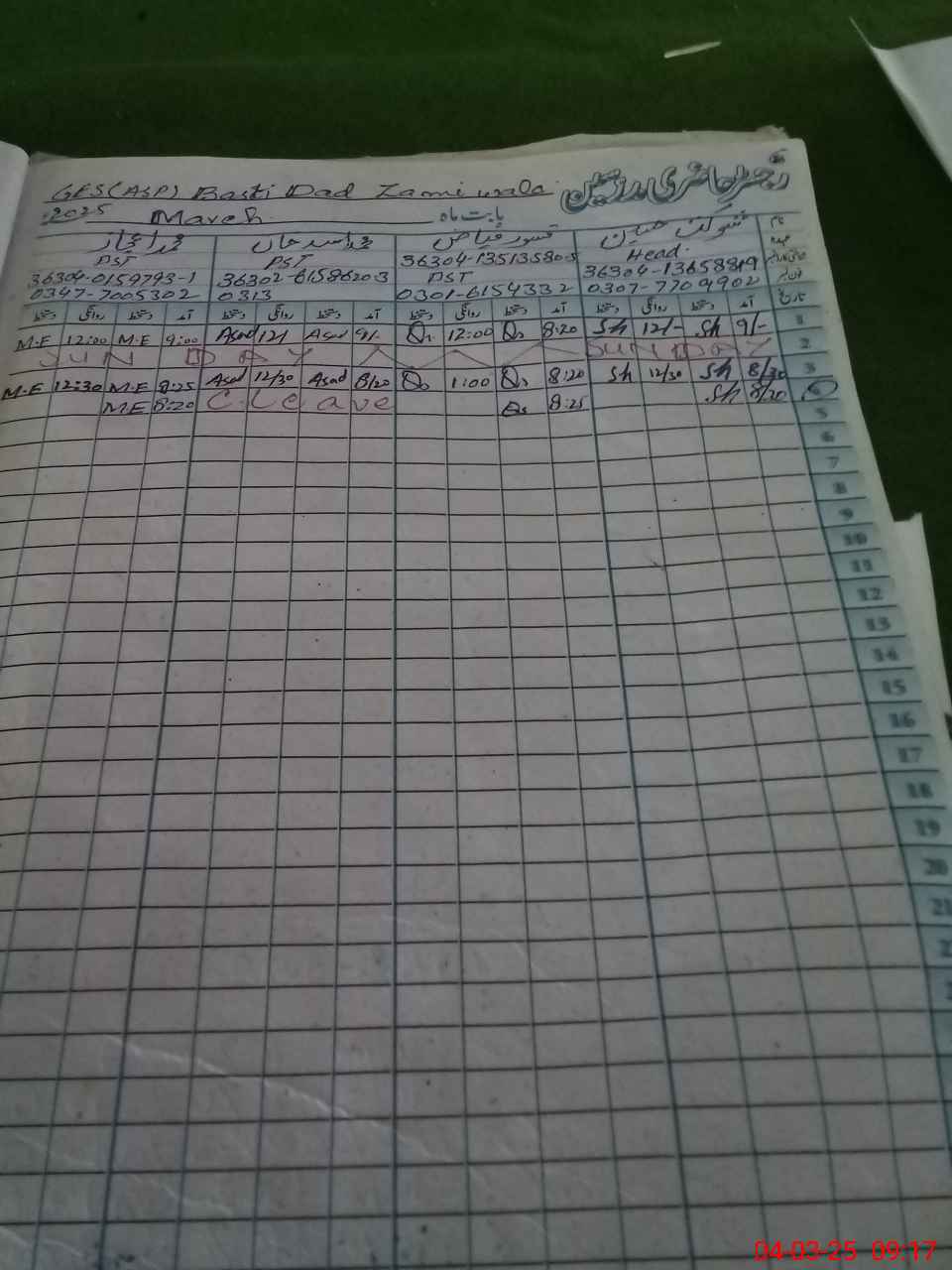 | EMIS Code: 36120150 | Name of School: GPS BASTI DAD ZAMAI WALA | |||
