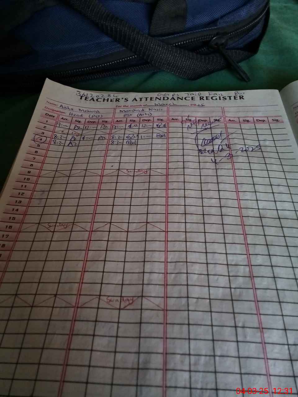 | Name: Ai**** Me**** Designation: (School Headmaster's/Headmistress's) HEADMISTRESS Phone/Cell Number: 03**** |