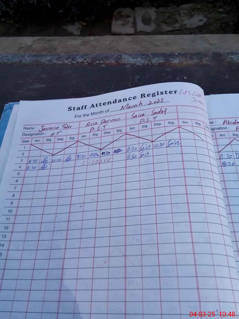 | Leave | Duty | Absent | Maternity | Medical | Ex- Pak |