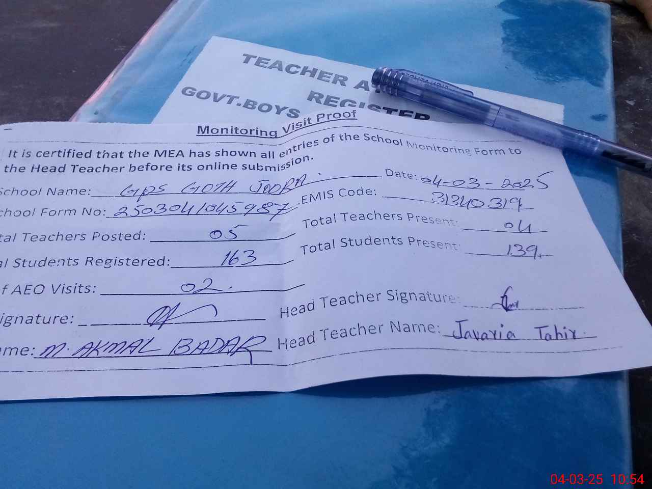 | EMIS Code: 31340319 | Name of School: GPS GOTH JOORA | |||