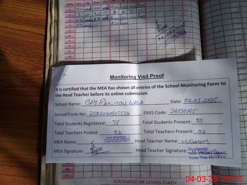 | EMIS Code: 36130195 | Name of School: GPS RAMOON WALA | |||
