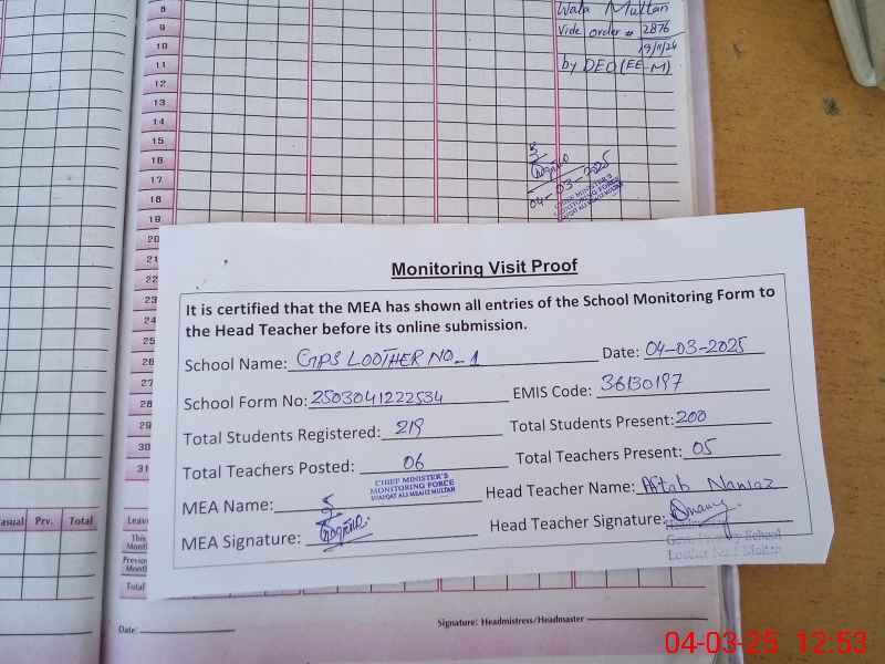 | EMIS Code: 36130197 | Name of School: GPS LOOTHER NO. 1 | |||