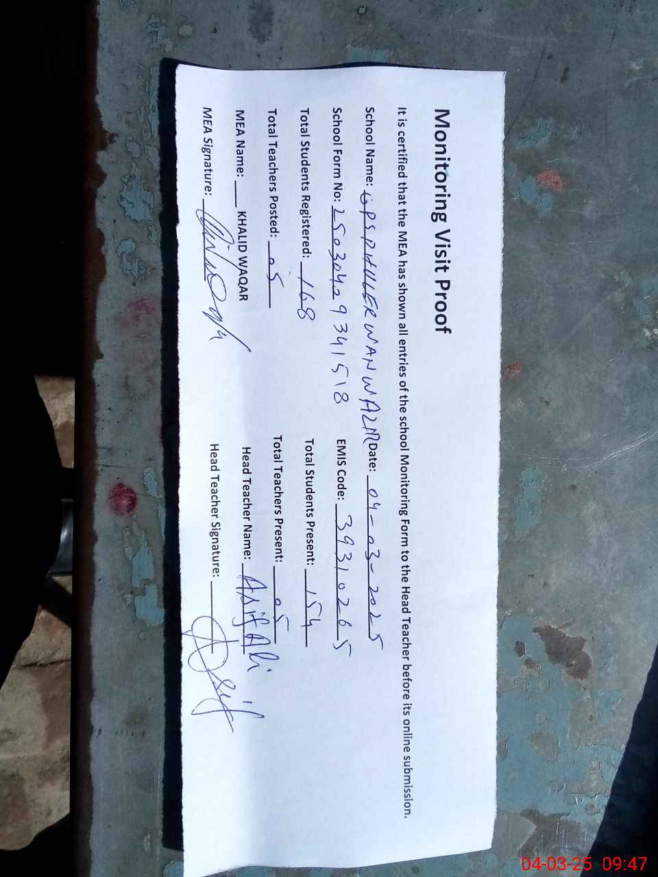 | EMIS Code: 39310265 | Name of School: GPS PHULER WAN WAZIR KE | |||