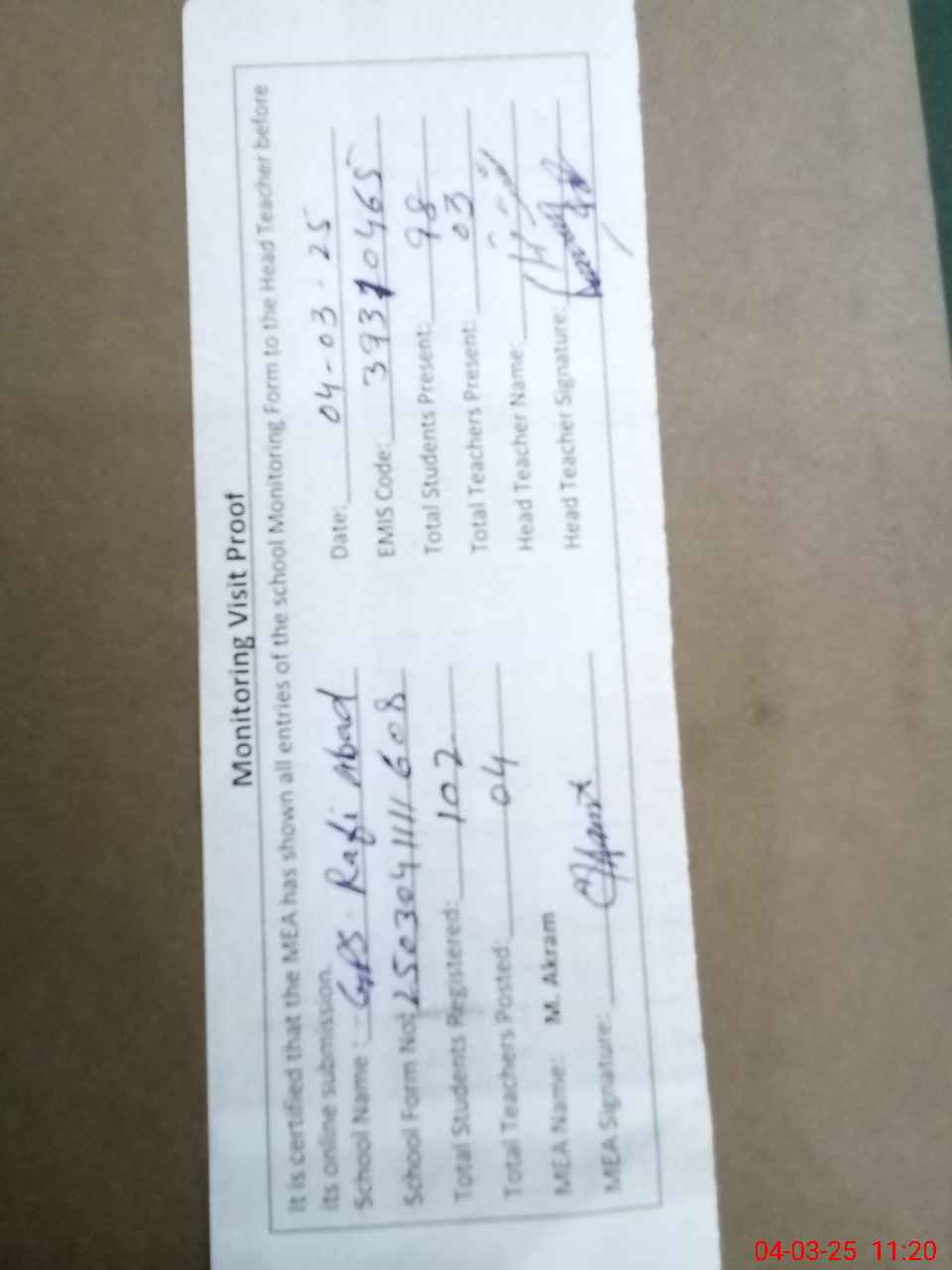 | EMIS Code: 39310465 | Name of School: GPS RAFI ABAD | |||