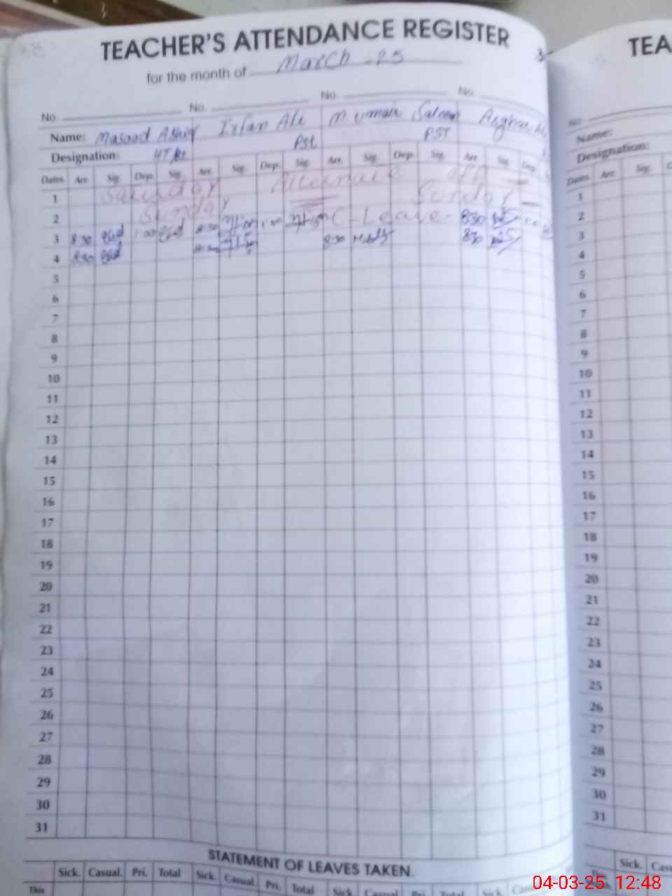 | Leave | Duty | Absent | Maternity | Medical | Ex- Pak |