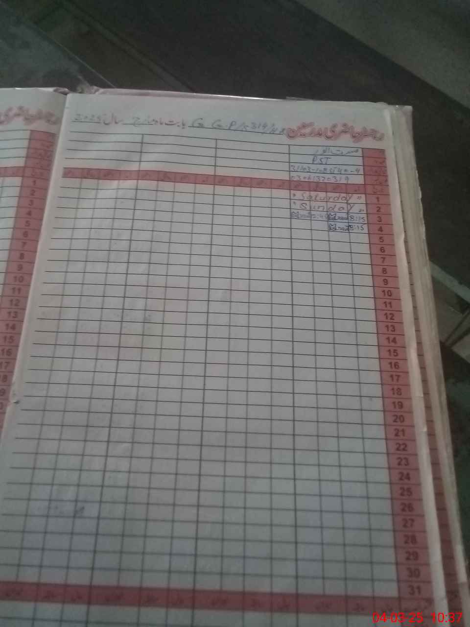 | CNIC | Full Name | Designation | R/C | Absence During Last Calender Month |