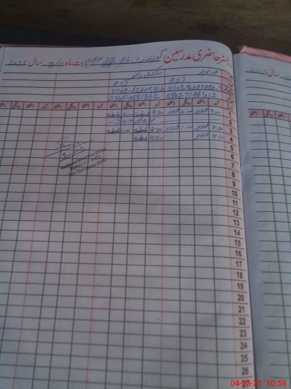 | Name: Sh**** Designation: (School Headmaster's/Headmistress's) PST Phone/Cell Number: 03**** |