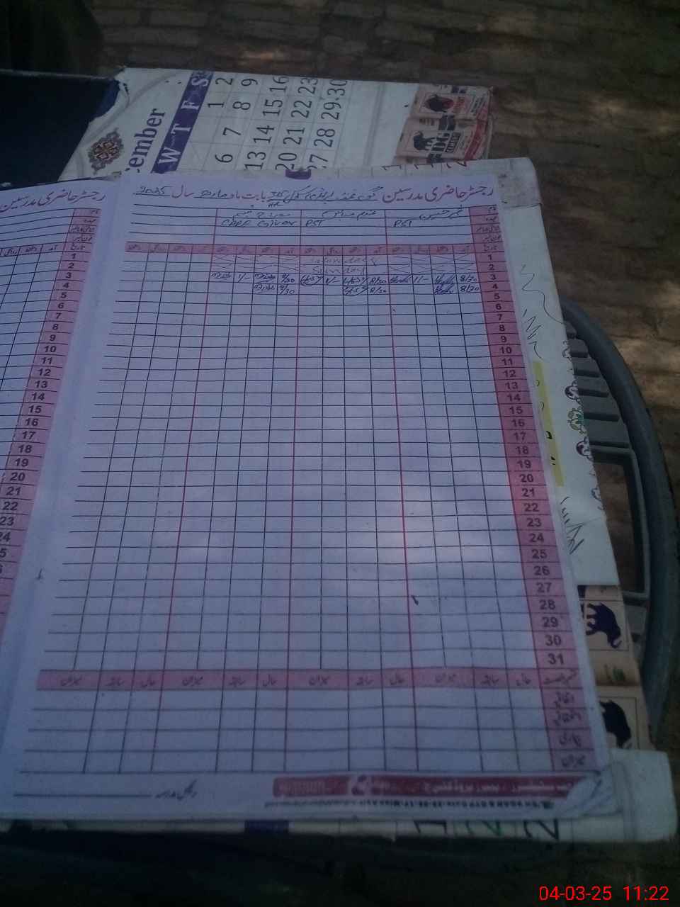 | CNIC | Full Name | Designation | R/C | Absence During Last Calender Month |