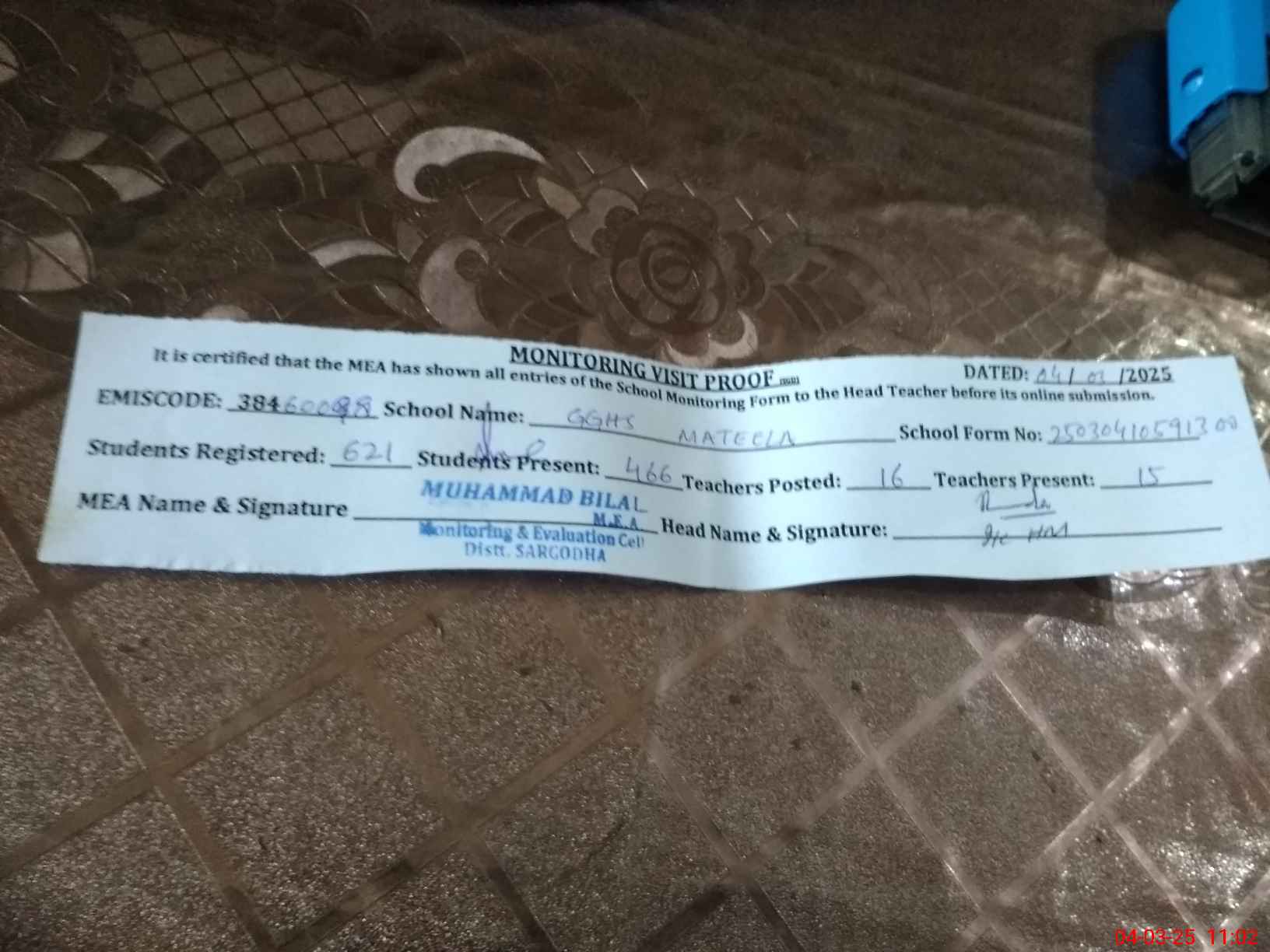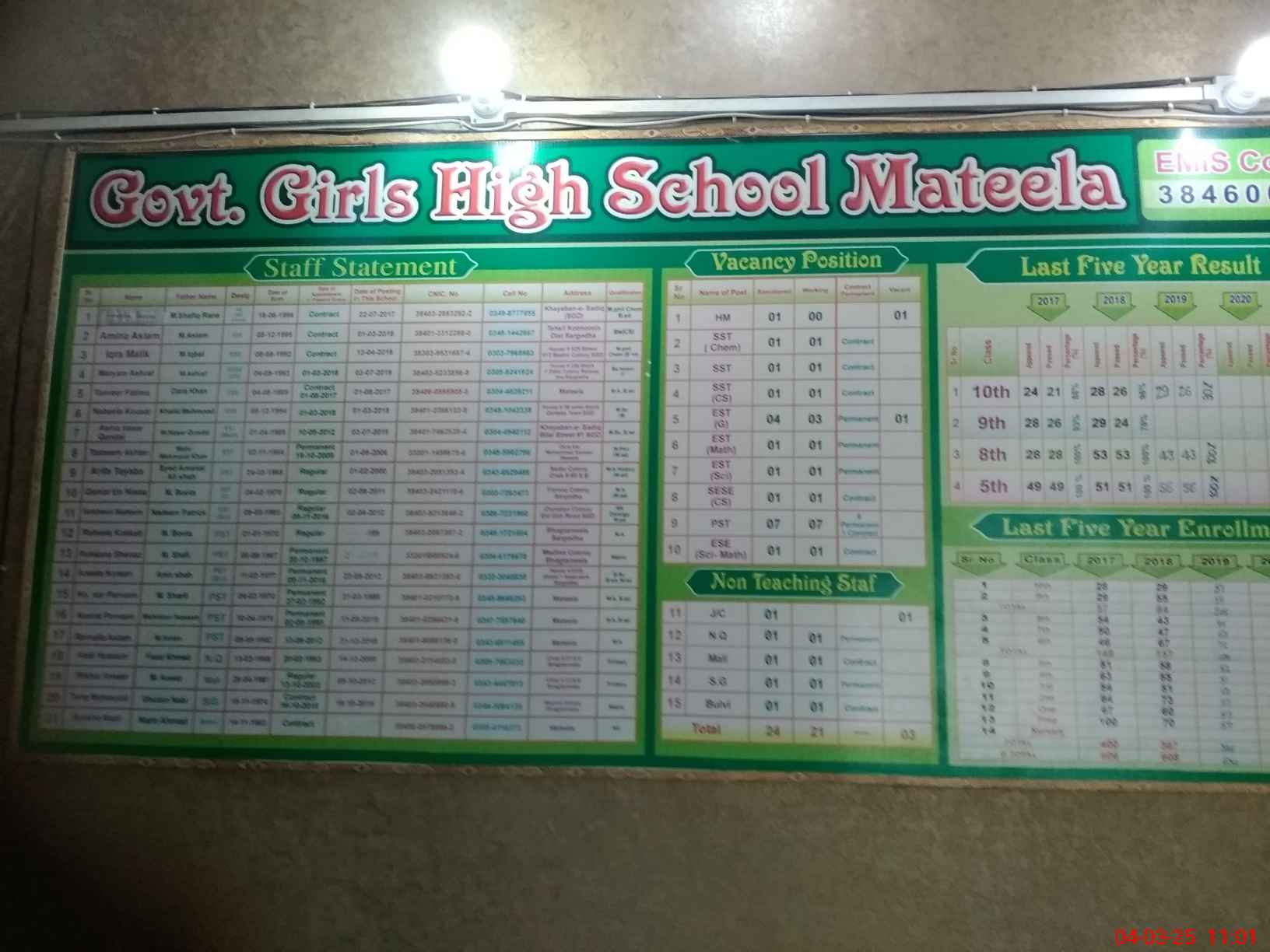 | EMIS Code: 38460098 | Name of School: GGHS MATEELA | |||