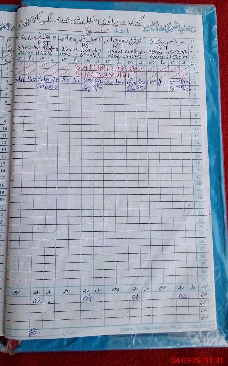 | Name: SY**** HA**** SH**** Designation: (School Headmaster's/Headmistress's) PST Phone/Cell Number: 03**** |