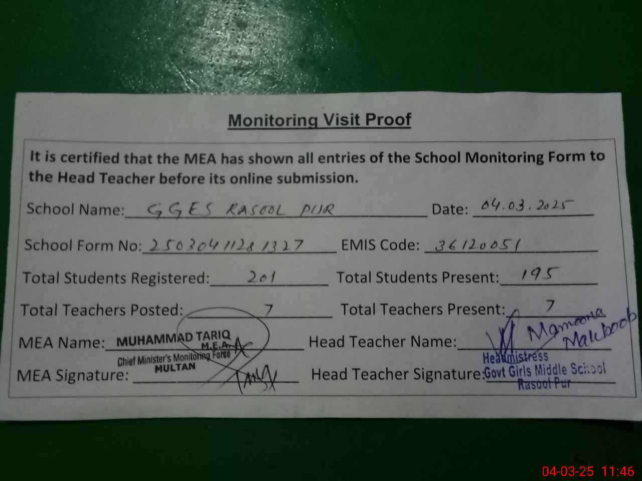 | EMIS Code: 36120051 | Name of School: GGES RASOOL PUR SHUJA ABAD | |||