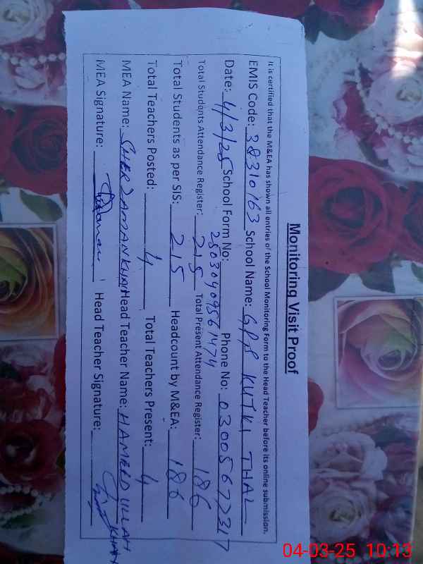 | EMIS Code: 38310163 | Name of School: GPS KUTKI THAL | |||