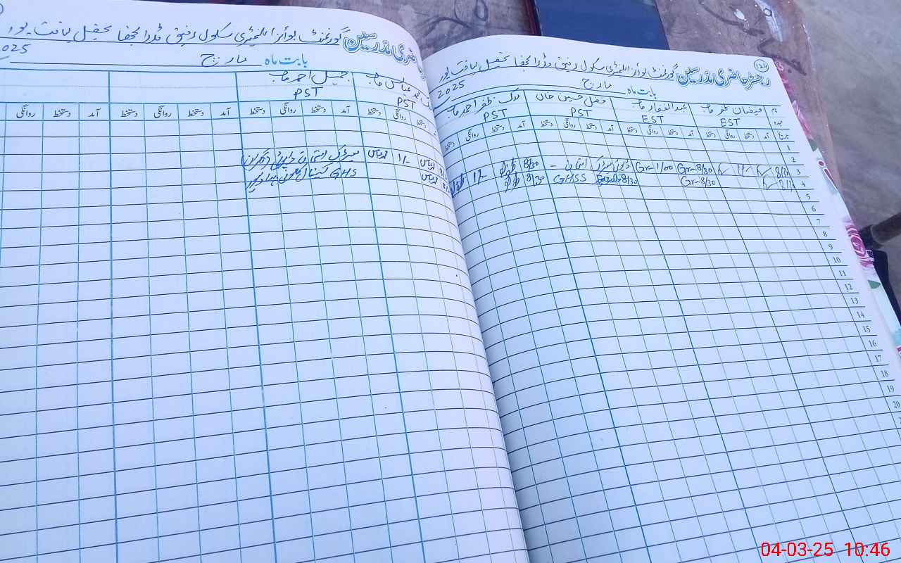 | 31**** | Ab**** Kh**** | 5 | 1 | 0 | 0 | 0 | 0 | 0 | 0 | 0 | 0 | 0 | Exam Duty |