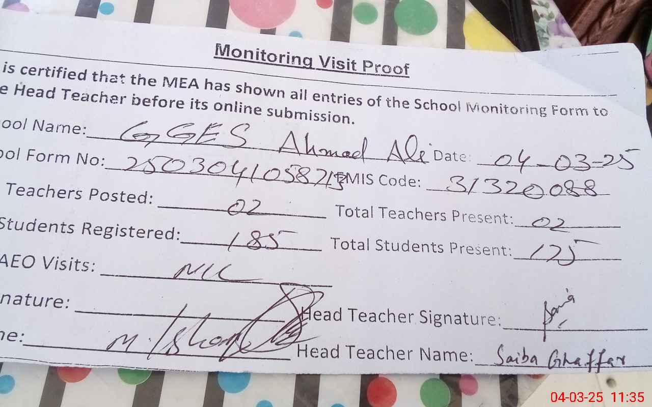 | EMIS Code: 31320088 | Name of School: GGES AHMAD ALI LAAR | |||