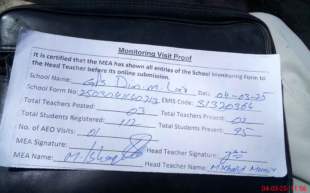 | EMIS Code: 31320364 | Name of School: GPS DIN MUHAMMAD LAR | |||