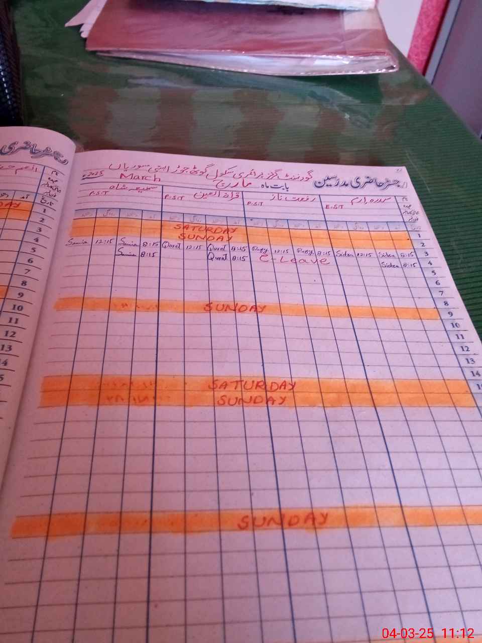 | Leave | Duty | Absent | Maternity | Medical | Ex- Pak |