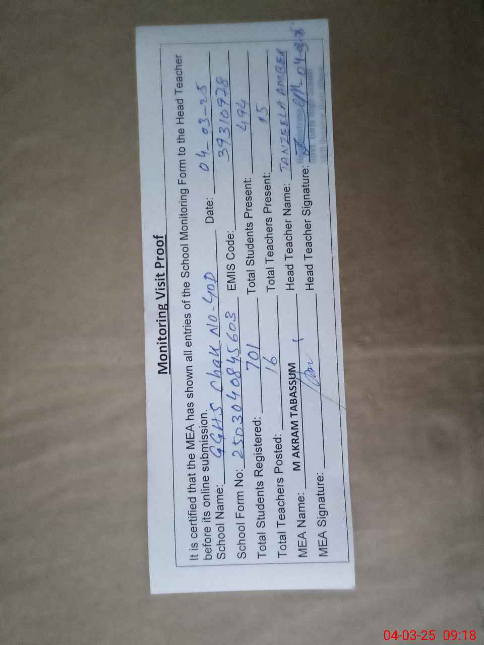 | EMIS Code: 39310978 | Name of School: GGHS CHAK NO. 40/D DEPALPUR | |||