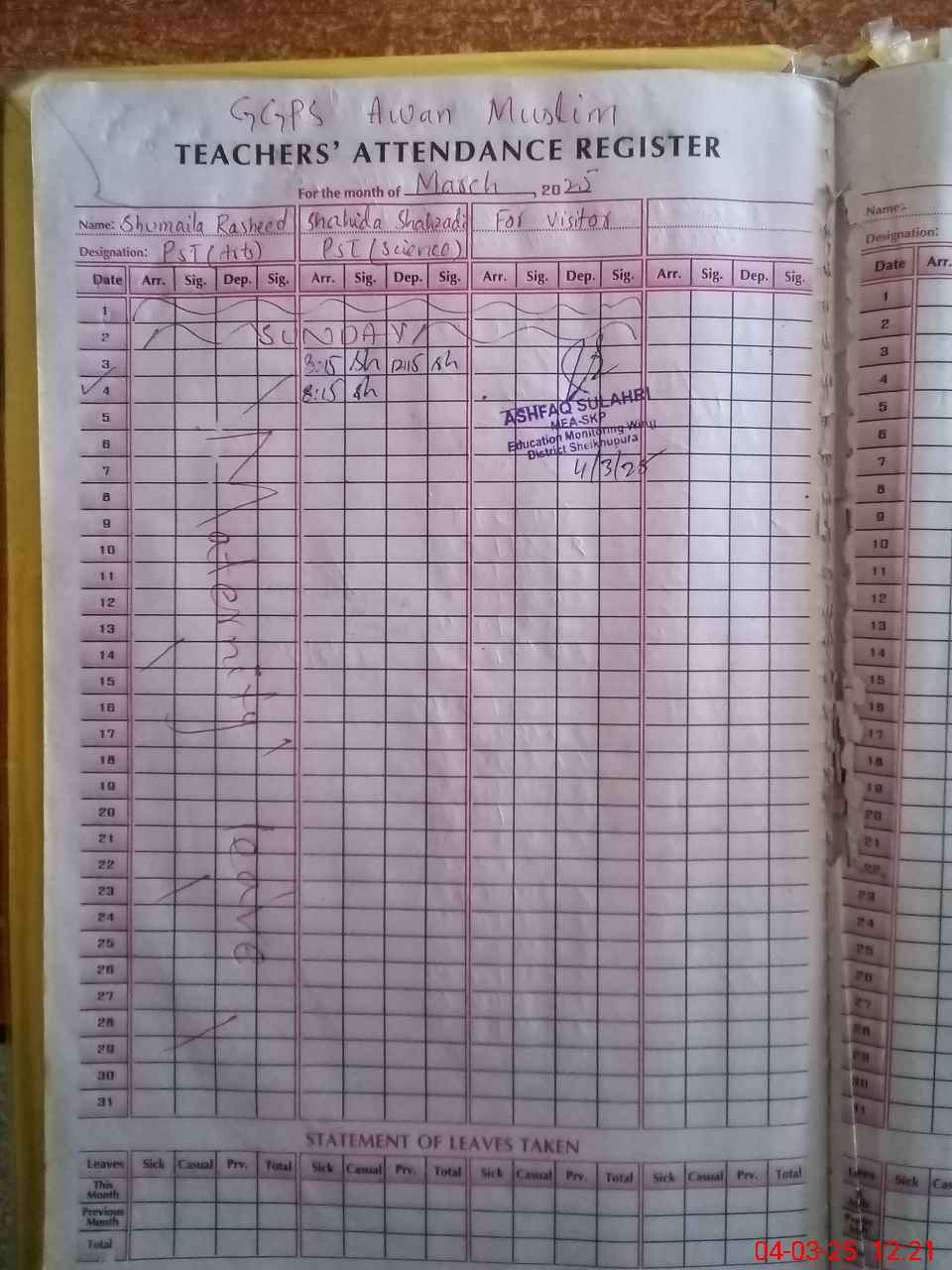 | EMIS Code: 35420662 | Name of School: GGPS AWAAN MUSLIM | |||