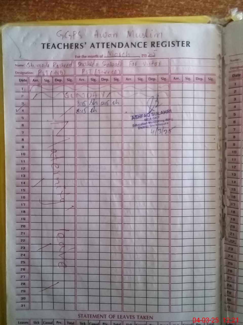 | Name: SH**** RA**** Designation: (School Headmaster's/Headmistress's) PST Phone/Cell Number: 03**** |