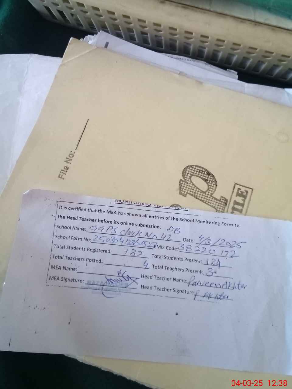 | EMIS Code: 38220172 | Name of School: GGPS CHAK NO. 42/DB | |||